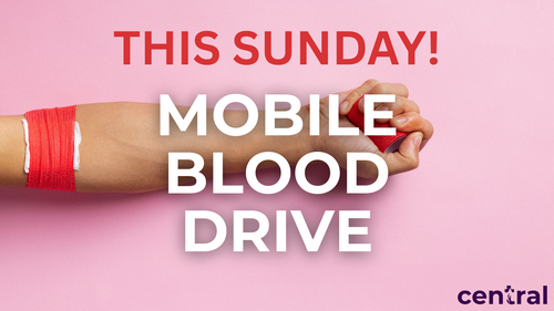 Central will host a Blood Drive on Sunday, January 11 from 9:30 AM–1:30 PM. The Big Red Bus will be parked in the lower lot near Barden Street. Your donation can save lives—please consider giving! See Irene Ward with any questions.