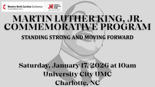 You are warmly invited to join the Western North Carolina Conference of The United Methodist Church for our 2026 Dr. Martin Luther King, Jr. Commemorative Program. It will be a time of worship, reflection, and recommitment to the work of justice, love, and hope. As followers of Christ and heirs of King's legacy, we gather to honor his life and to renew our dedication to a better world. Saturday, January 17, 2026, 10am, University City UMC