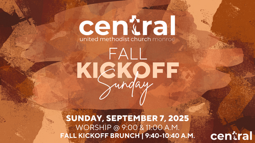 Join us for Central's Fall Kickoff Sunday on September 8, as we launch into a new season of ministry and community at Central! Fall Kickoff Sunday also marks the return to our regular worship schedule, with Modern Worship at 9:00 A.M. in Central Hall and Traditional Worship at 11:00 A.M. in the Sanctuary.