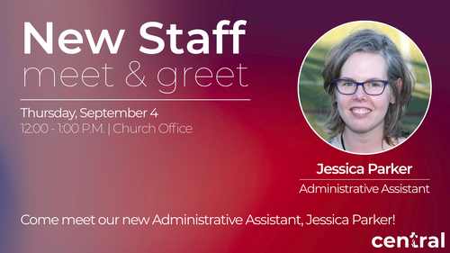 Join us on Thursday, September 4, from 12:00 to 1:00 p.m. in the Church Office for a special meet and greet. This is a wonderful opportunity to stop by, say hello, and help Jessica feel at home here at Central. We kindly ask that this gathering be the time for introductions, so that Jessica can settle into her work without unexpected visits during office hours. We look forward to seeing you there!
