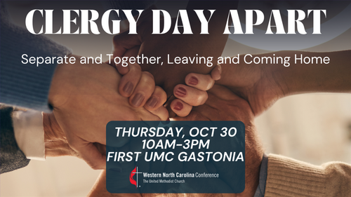 This Thursday, October 30, Dr. Bill is attending the WNCC Clergy Day Apart at First UMC Gastonia.