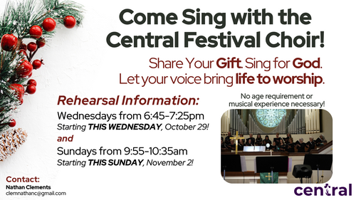 We are getting ready for Advent and Christmas and we want YOU to be part of our choir! Lifting our voices together is more than just singing, it’s a way to lead one another into a worship experience that is closer to God! Our commitment is to vital worship and transforming hearts, and through this experience your own heart can be transformed too.