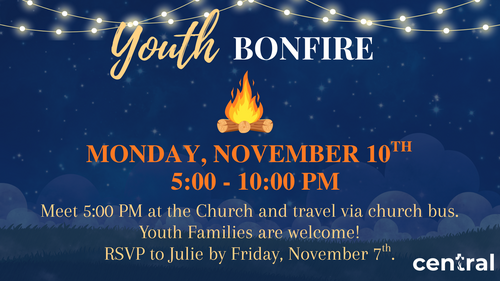 Monday, November 10th from 5:00 - 10:00 PM. We'll meet at 5:00 PM at the Church and travel via church bus. Youth Families are welcome! RSVP to Julie by Friday, November 7th.