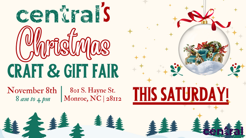 Get ready for Central's Annual Christmas Craft and Gift Fair, to be held THIS Saturday, November 8 from 8 am - 4 pm in the FLC.