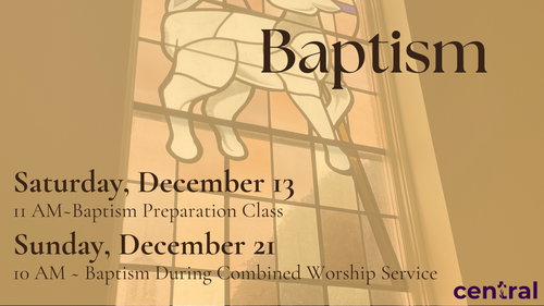 Celebrate the joy of the season with us for Christmas and Baptism Sunday on Sunday, December 21, 2025, at 10:00 A.M. in the Central UMC Sanctuary! Gathering Music will begin at 9:50 A.M.