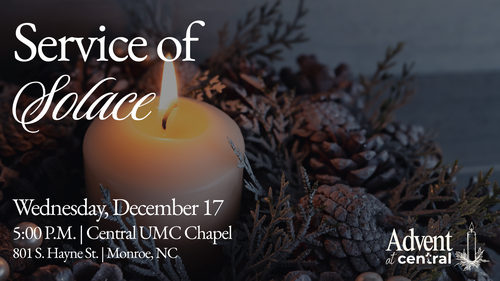 Find comfort and peace this season at the Community Service of Solace on Wednesday, December 17, 2025, at 5:00 P.M. in the Central UMC Chapel.