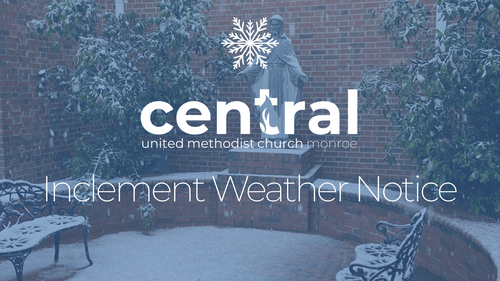 Please monitor your email and Central UMC's social media channels on Facebook and Instagram, as well as TV channels WBTV Channel 3 and WSOC Channel 9 for updates on church openings or closures this Sunday, January 25.
