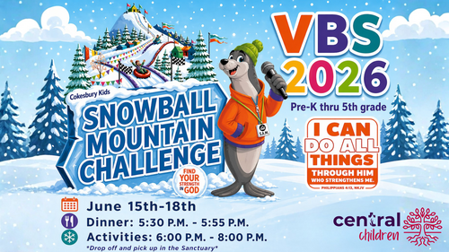 VBS will be held Monday, June 15th - Thursday, June 18th, 2026. We will have dinner each night from 5:30-6 pm followed by Dancing, Crafts, a Bible Story, Bible Challenge, and Games. Pick up will be 8 pm. Children will be dropped off and picked up in the Sanctuary.