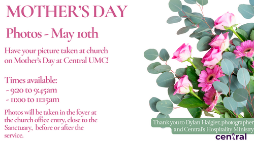 Have your picture taken at church on Mother's Day Sunday, May 10th!