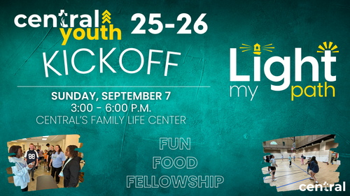 Join us for the Central Youth Kickoff on Sunday, September 7, from 3:00 to 6:00 P.M. at Central’s Family Life Center. It’s the perfect way to start the new season with tons of fun, food, and fellowship!