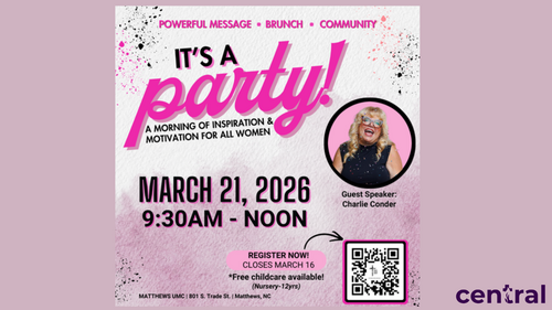 Women of Central are invited to an event at Matthews United Methodist Church — a joy-filled, spirit-lifting morning we’re calling “It’s A Party!”